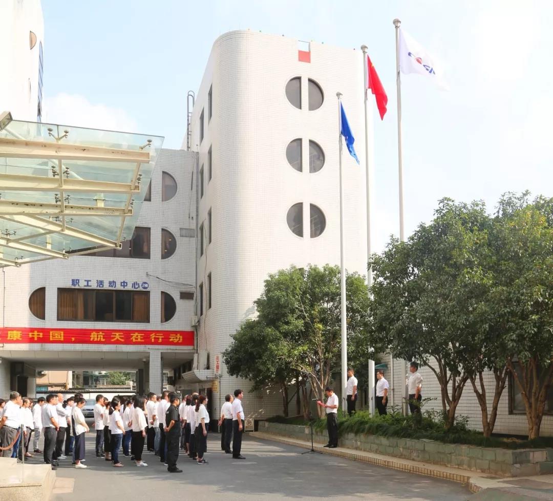 伴隨著雄壯的國歌聲和航天科工之歌,航天通信干部職工莊嚴肅立,鮮艷的五星紅旗與藍白航天科工司旗先后徐徐升起,參加升旗儀式的全體干部職工滿懷對祖國的無限熱愛和中國航天事業的崇高敬意,向國旗和司旗行注目禮。