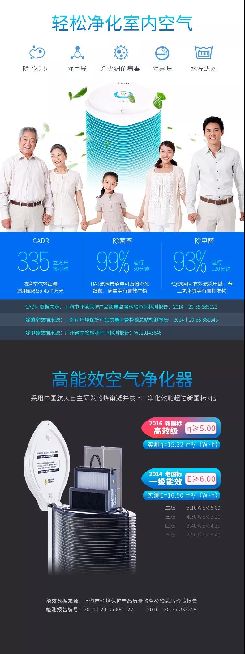 航天迅馳空氣凈化器為無耗材空氣凈化器,凈化效能超2016新國標3倍;CARD值(每小時凈化空氣量)335立方米/每小時(大);運用中國航天自主研發 HAT·蜂巢凝并技術,有效凈化空氣中PM10、PM2.5、PM0.1顆粒物,30分鐘凈化率達99.9% 可殺滅空氣中的細菌和病毒,30分鐘殺菌率99%。
