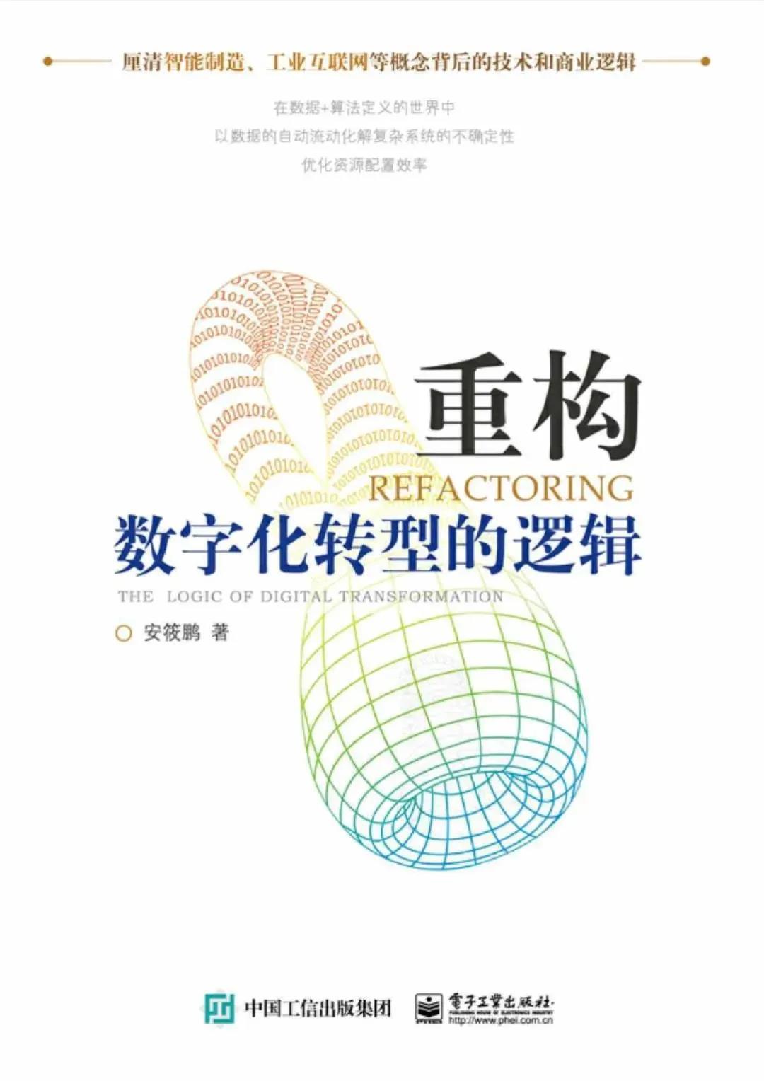 薦書語:最近研讀了原工信部電子信息司副司長安筱鵬博士的新作《重構:數字化轉型的邏輯》,該書從分析數字化的本質,即以數據的自動流動化解復雜系統的不確定性入手,提出了制造型企業通過以數據驅動為特征、由智能制造和工業互聯網引領數字化轉型的路徑選擇。近年來,航天科工集團公司不斷強化“新業態體系”建設,要求各級組織加速推進“四化”,實現數字化轉型。該書揭示的數字化轉型是在互聯網開放共享互操作環境下,軟件、數據、云計算重新定義價值鏈、新分工體系和決策系統理念與集團公司“腦倉室站金”的構想與實踐不謀而合,同時傳統制造轉型為智能制造并邁入工業互聯網階段的演進路線設計為企業實施“四化”,推動數字化轉型提供了著力點,具有很強的指導作用。