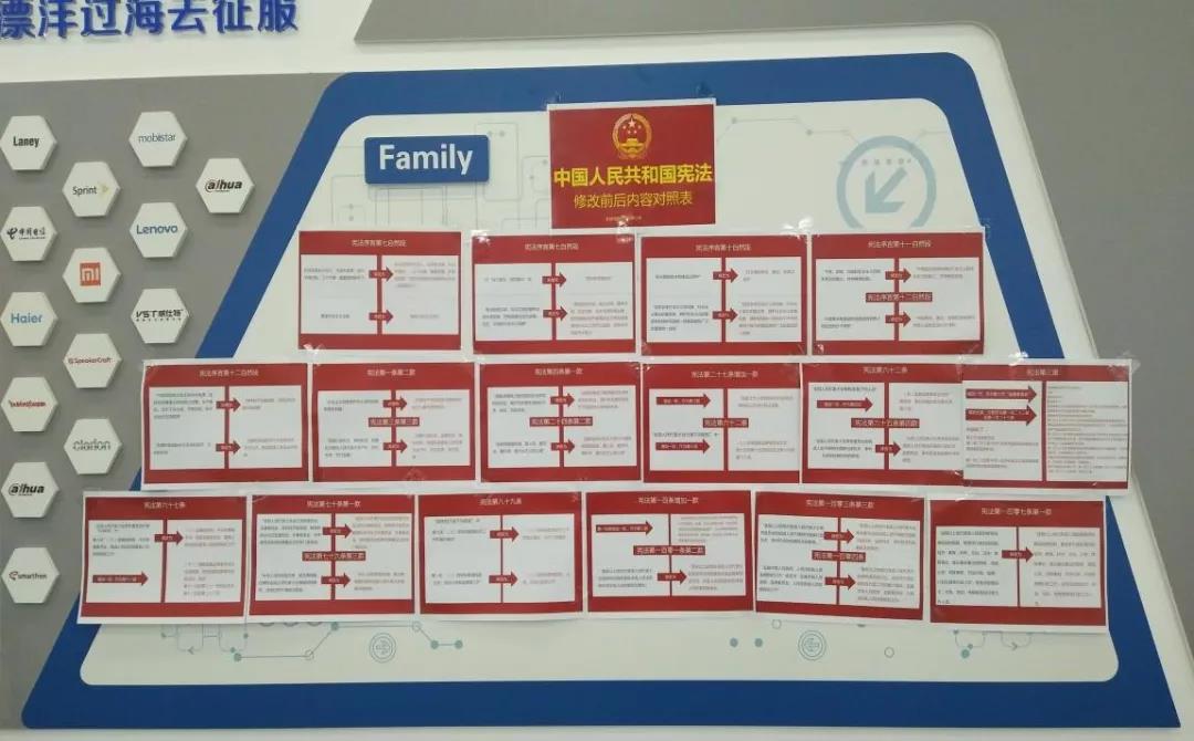 智慧海派在宣傳欄張貼《憲法》修改前后內容對照表