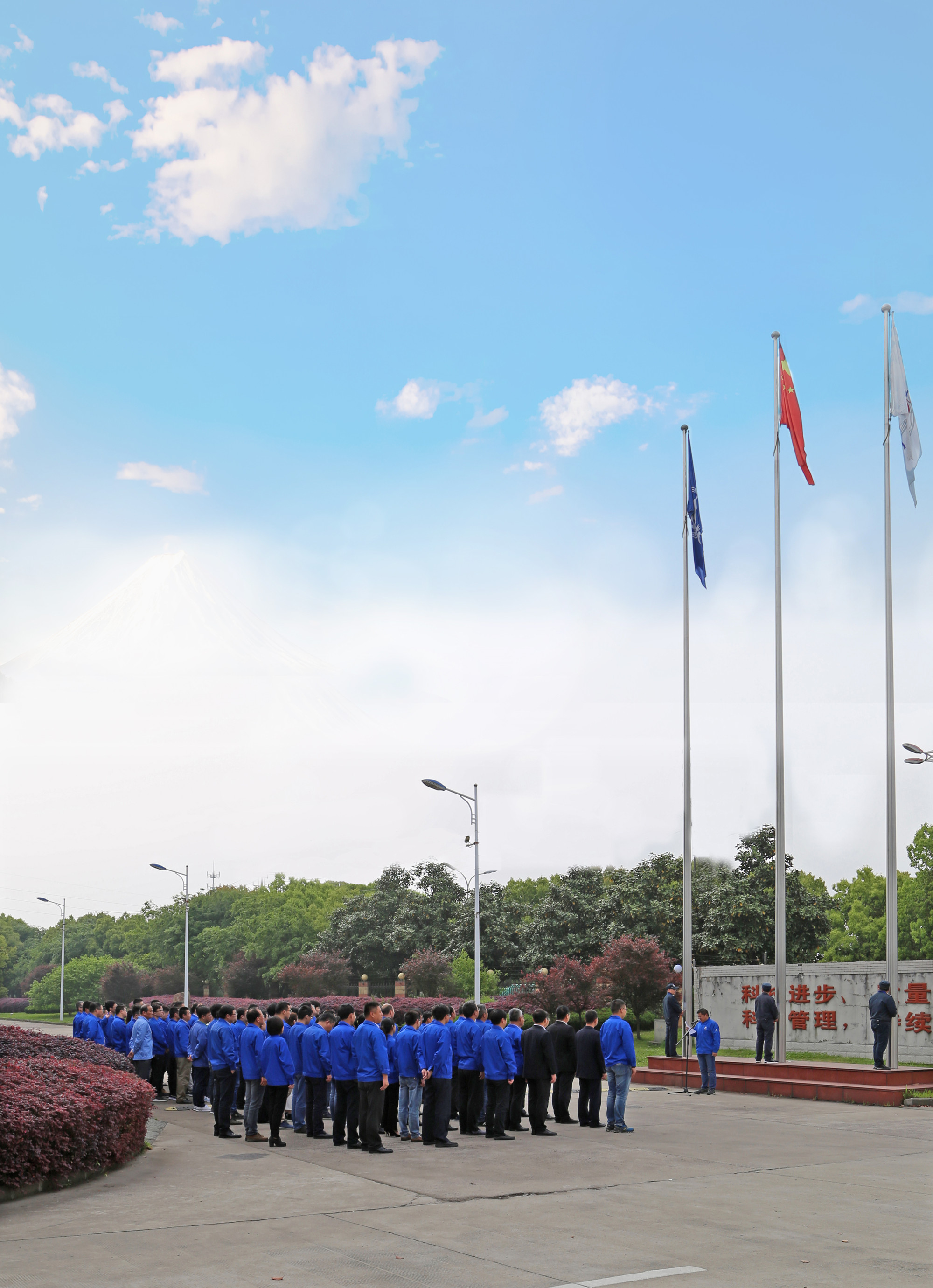 江蘇捷誠(chéng)領(lǐng)導(dǎo)班子、各車間部室負(fù)責(zé)人、各黨支部書記、工會(huì)和團(tuán)委代表、技術(shù)中心全體人員參加升旗儀式。當(dāng)雄壯有力的《義勇軍進(jìn)行曲》響徹整個(gè)廠區(qū),全體人員行注目禮,全場(chǎng)彌漫著一種莊嚴(yán)肅穆的氣息,鮮艷的五星紅旗冉冉升起,激發(fā)了全體干部職工不斷向上的斗志,點(diǎn)燃了大家強(qiáng)烈的愛(ài)國(guó)熱情。升旗儀式上,公司黨委號(hào)召全廠職工把愛(ài)國(guó)之志轉(zhuǎn)化為報(bào)效祖國(guó)的實(shí)際行動(dòng),為航天事業(yè)發(fā)展而奮斗。