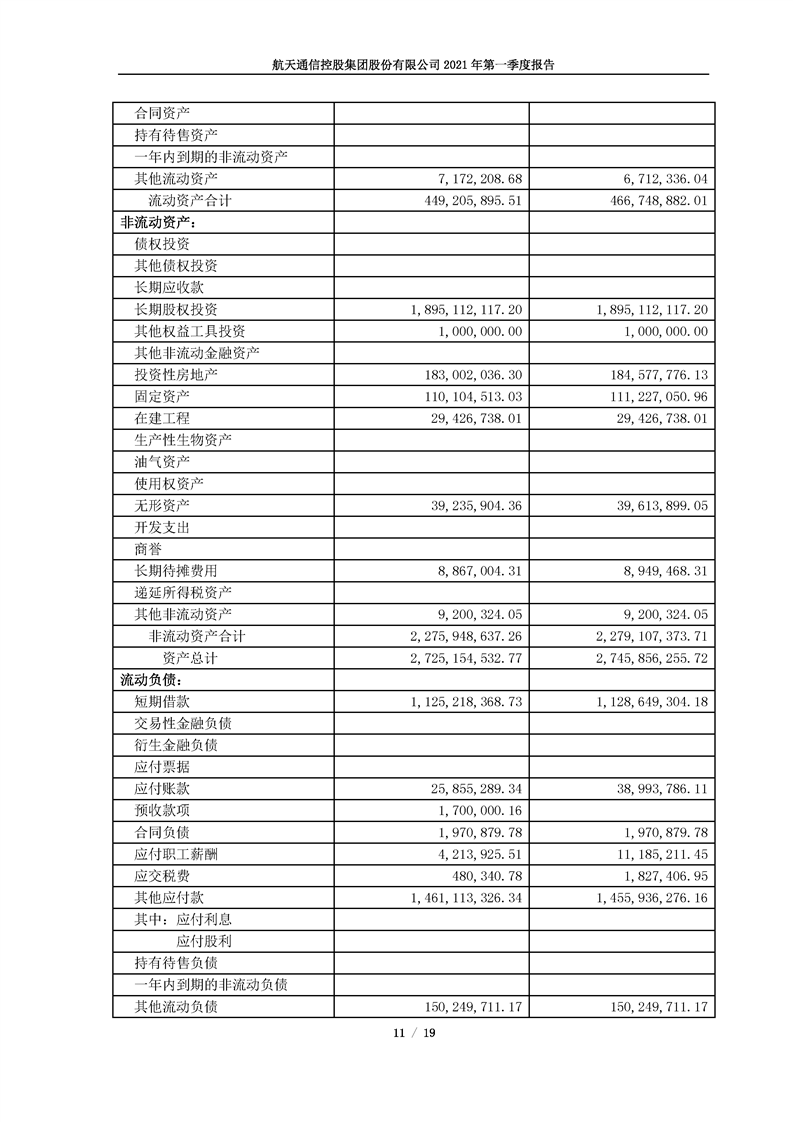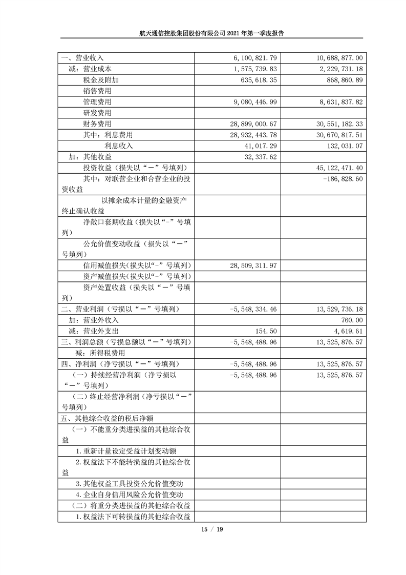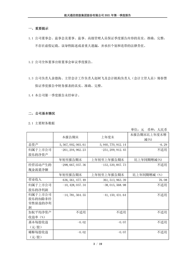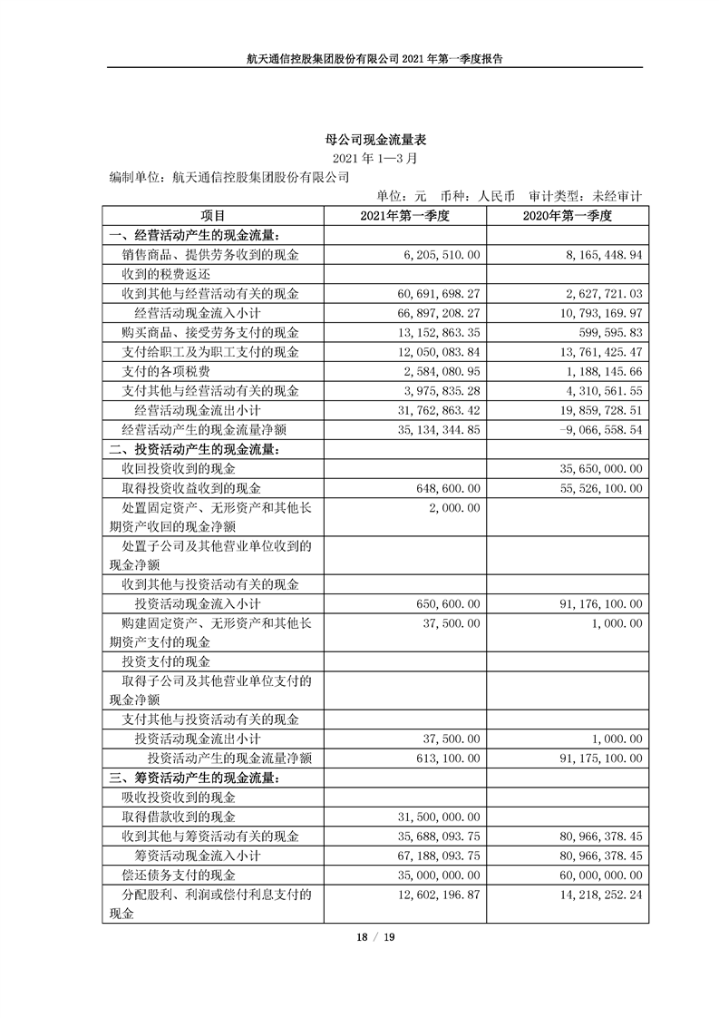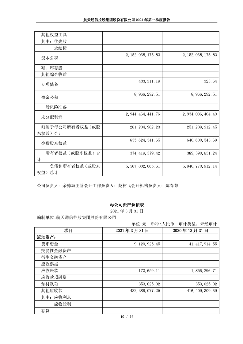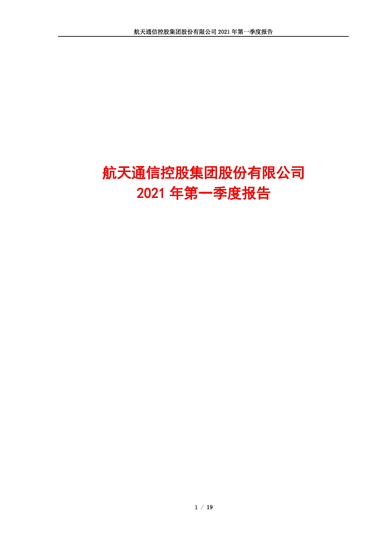 航天通信控股集團股份有限公司2021年第一季度報告