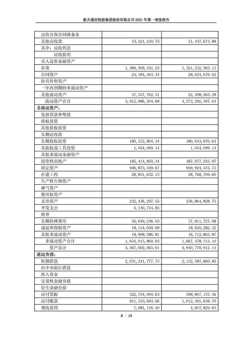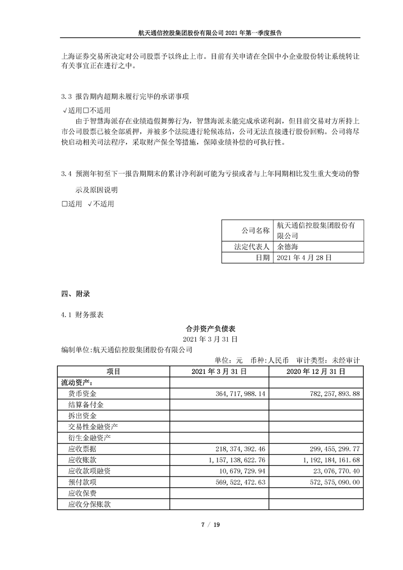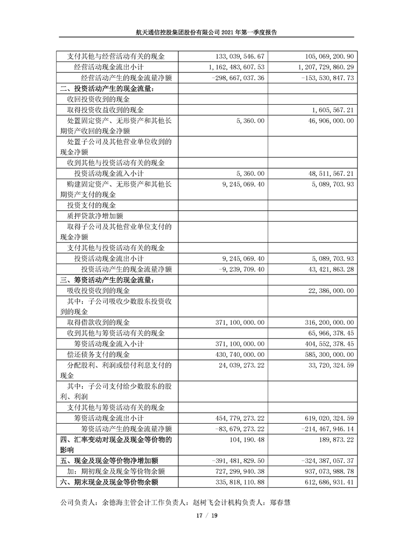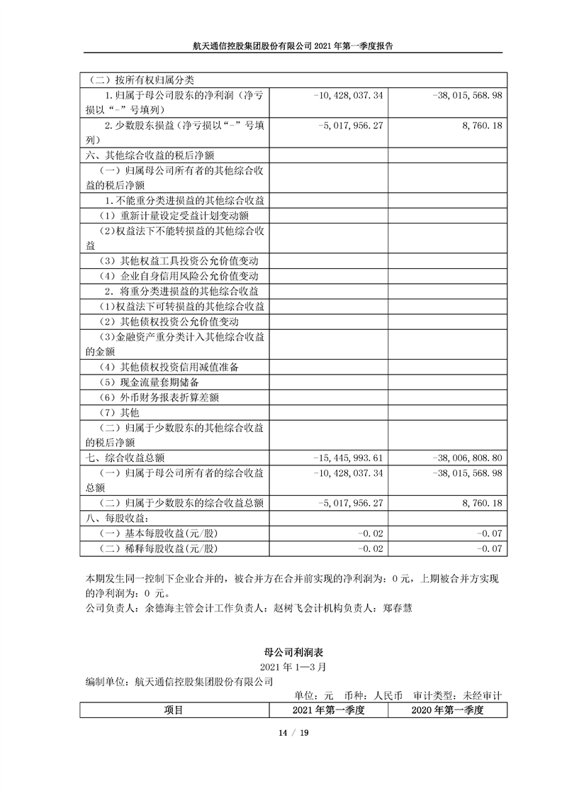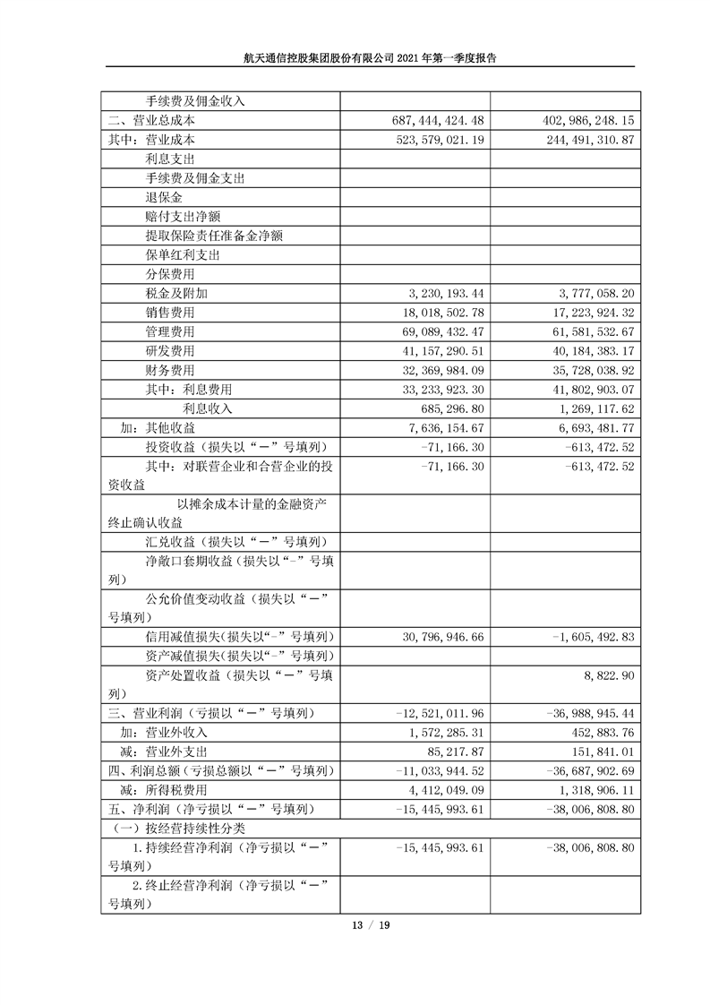 航天通信控股集團股份有限公司2021年第一季度報告