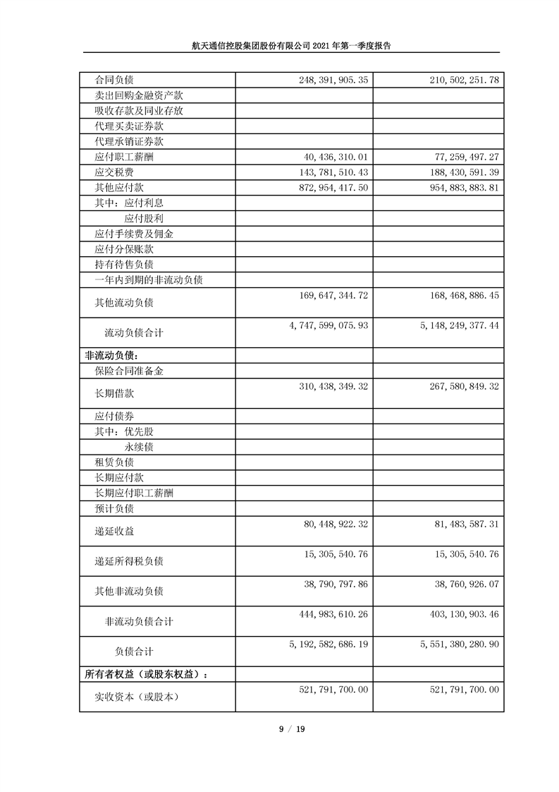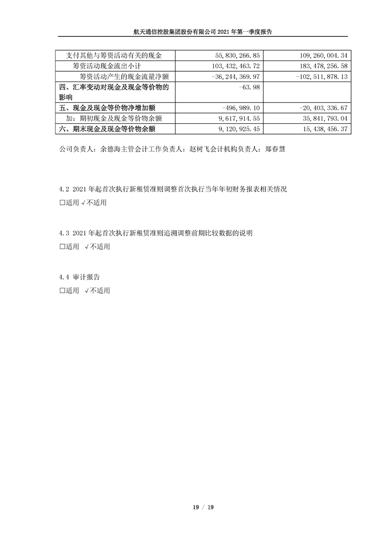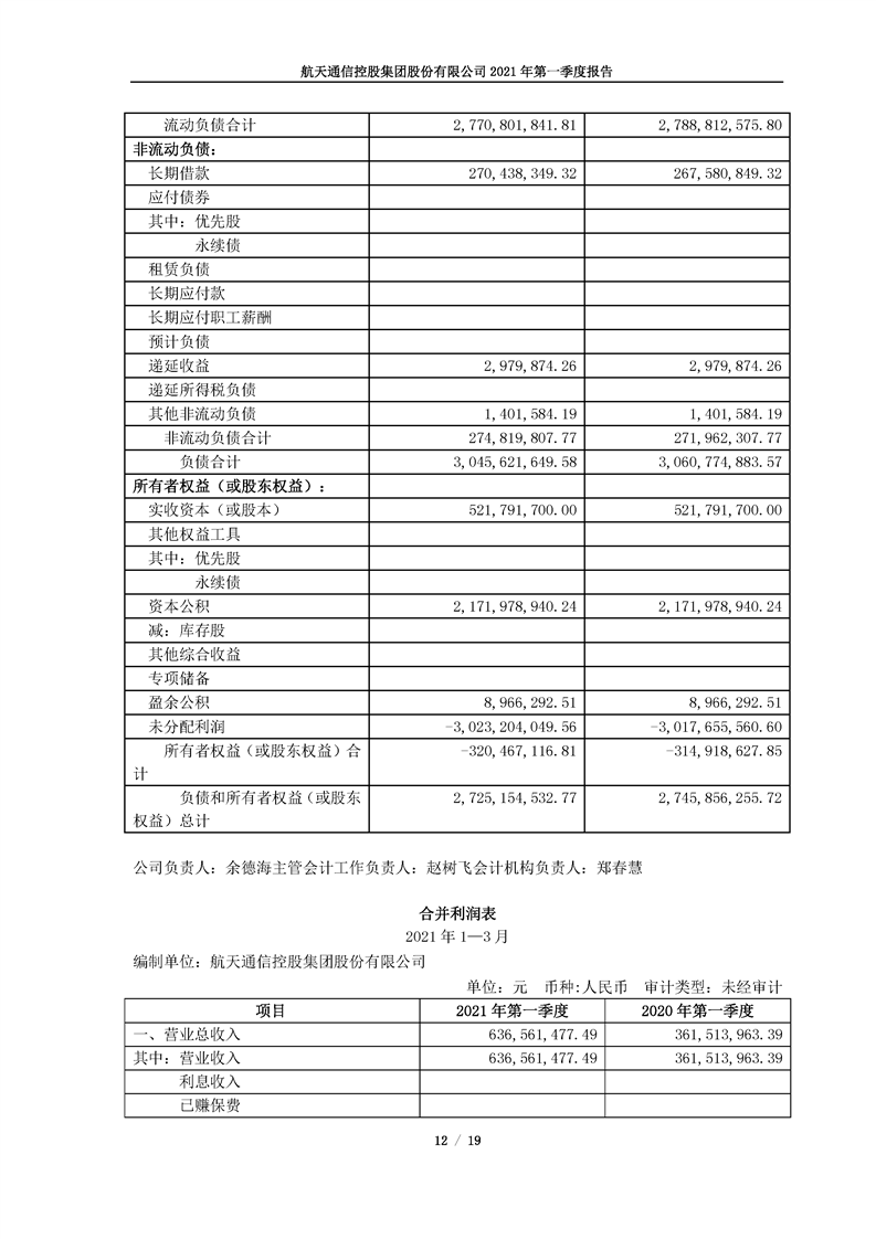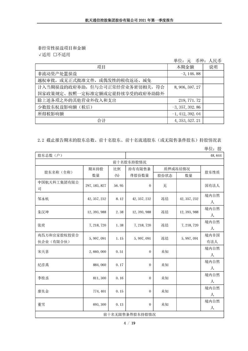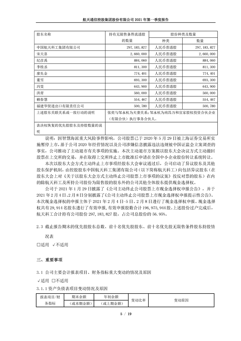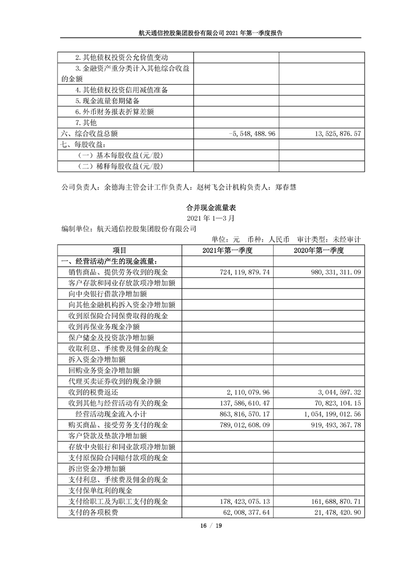航天通信控股集團股份有限公司2021年第一季度報告